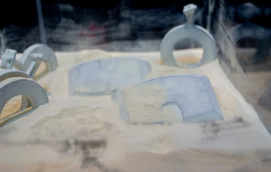Once a layer is complete, the platform lowers, a new powder layer is applied, and the process repeats. After printing, the entire "cake" of powder and parts must cool before being excavated. The parts are then bead-blasted to remove excess powder, resulting in strong, functional components ready for use or further post-processing.
